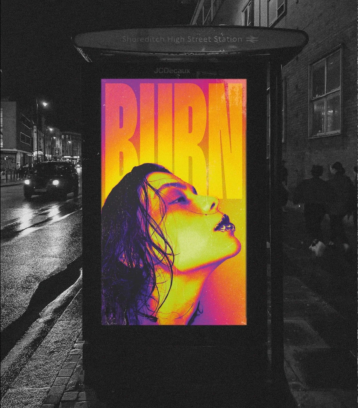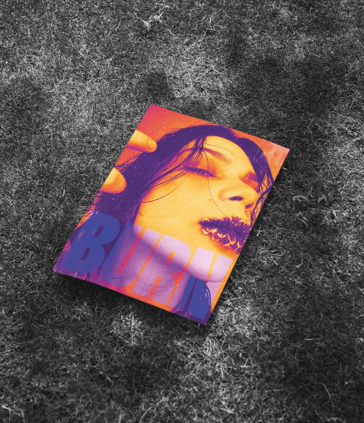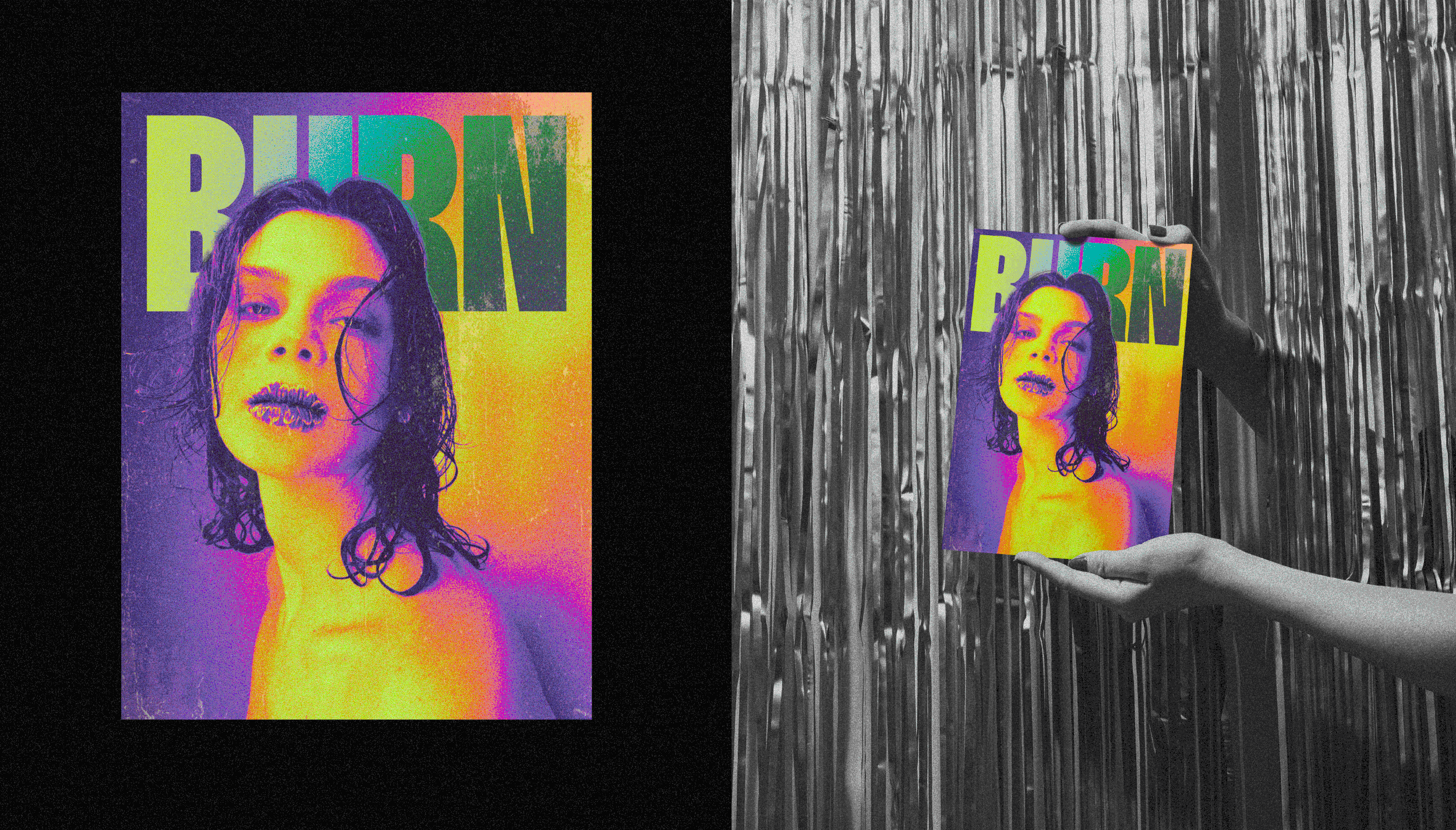 We delve into the heart of grunge style, merging it with an extreme and provocative energy that can only be described as incandescent. This title, ablaze with intensity, guides us through a graphic journey where vibrant tones and rough textures breathe life into a magazine cover that challenges conventional boundaries.